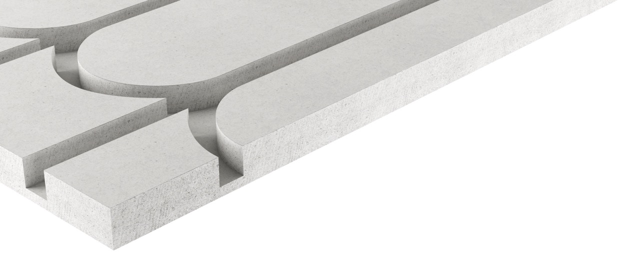 Fermacell Therm25 ist ein Trockenestrichelemet aus Gipsfaser mit integrierten Rohrführungen für Heiz- und Kühlsysteme im Innenbereich. Die gefrästen Nuten ermöglichen die Aufnahme von 16 mm Heizrohren und eine effiziente Wärmeverteilung. Mit einem Rohrabstand von 125 mm bietet das Element eine erhöhte Heizleistung, insbesondere in kleineren Räumen. Es kombiniert Lastverteilung und Heizebene in einem System und eignet sich für Renovierung und Sanierung mit geringer Aufbauhöhe.