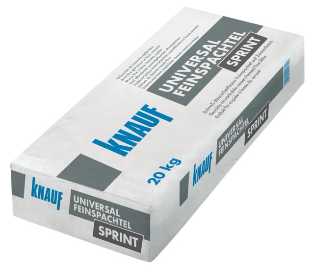 Knauf Universal Feinspachtel Sprint ist eine gebrauchsfertige Spachtelmasse für Innenflächen, geeignet für Wand- und Deckenbereiche. Das Material lässt sich leicht aufziehen und glätten und ist für vollflächiges Spachteln sowie zum Ausgleichen von Unebenheiten einsetzbar. Durch die Sprint-Formulierung trocknet die Spachtelmasse besonders schnell und ermöglicht zügige Weiterbearbeitungsschritte wie Schleifen oder Beschichten.
