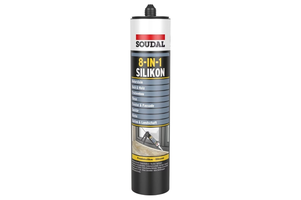 Das 8-in-1 Premium Silikon von Soudal zeichnet sich durch seine universelle Einsetzbarkeit im Sanitär-, Bau- und Glasbereich aus. Das einkomponentige Dichtmittel härtet schnell aus, ist UV- und witterungsbeständig sowie schimmelresistent. Es haftet hervorragend auf vielen Untergründen wie Glas, Keramik, Aluminium sowie Kunststoffen und ermöglicht flexible Lösungen am Bau.